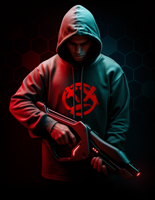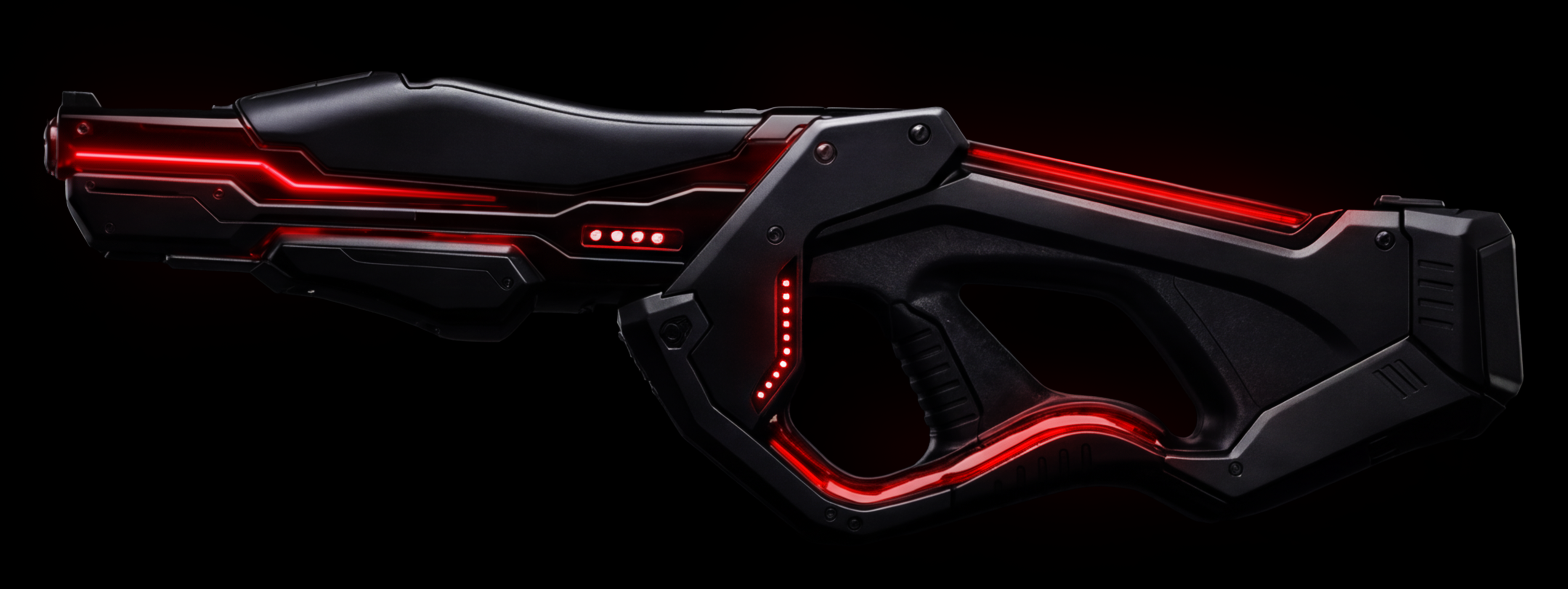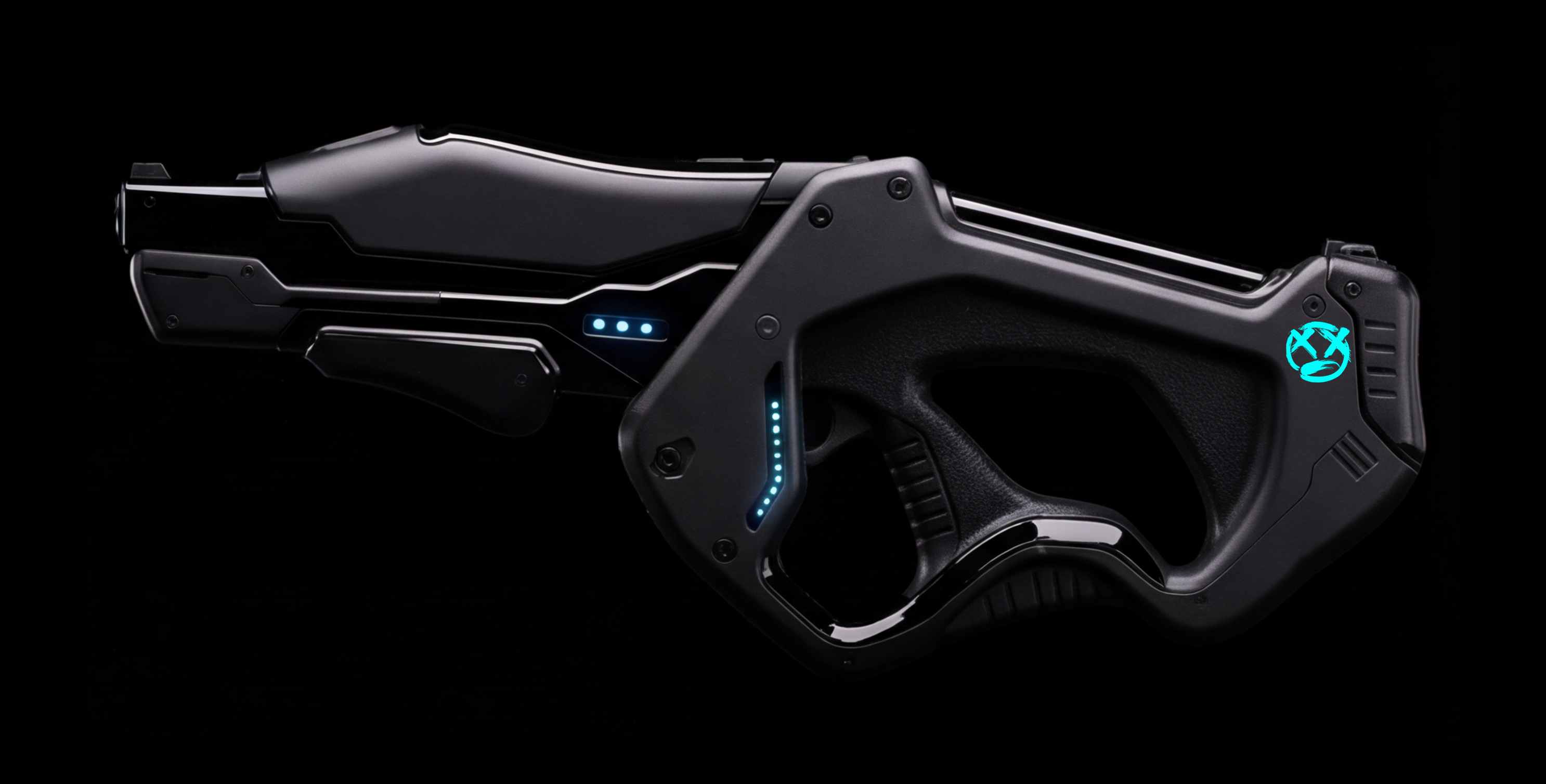 AI facilitated a multi-step process for creating an image of the subject holding the product. Through a blended workflow, I was able to extend the frame, guide the pose generation, and apply the final styling and branding, while remaining faithful to the original design of the gun.